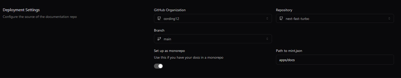 docs directory. Ensure set up as a monorepo is selected.