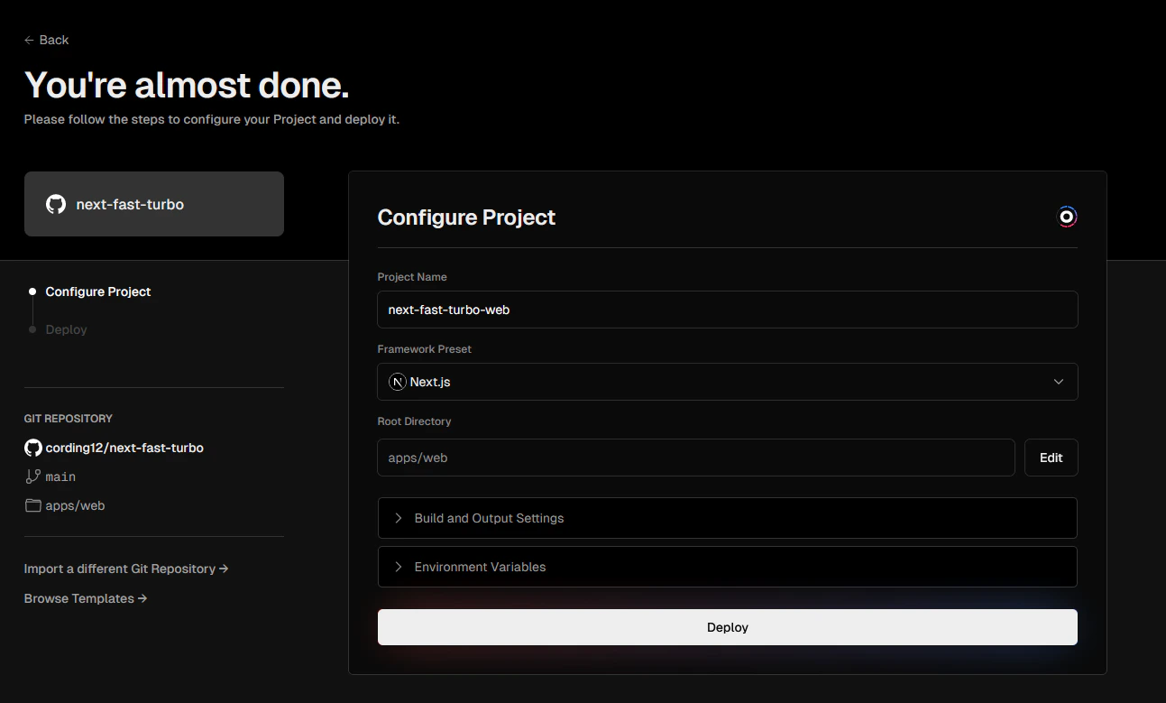 Git repository option and select your repository from the list of repositories and click Connect.Configure Project